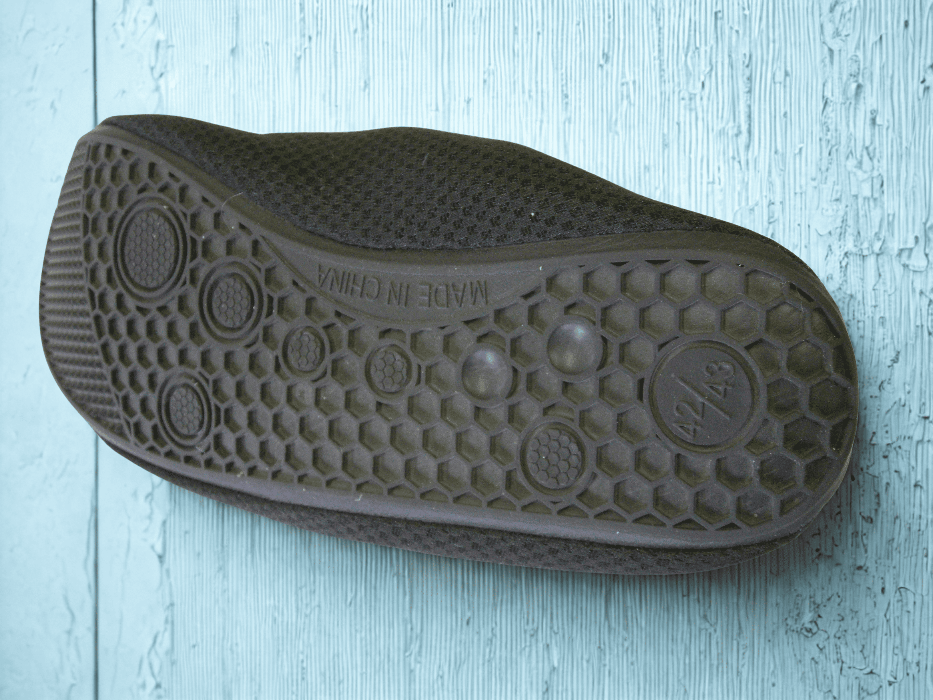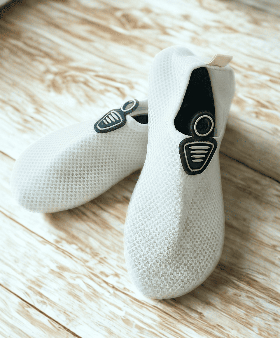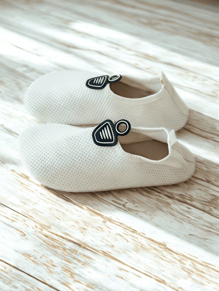 しっかりしたゴム底で、ぬれたタイルや石の上でもすべりにくい!